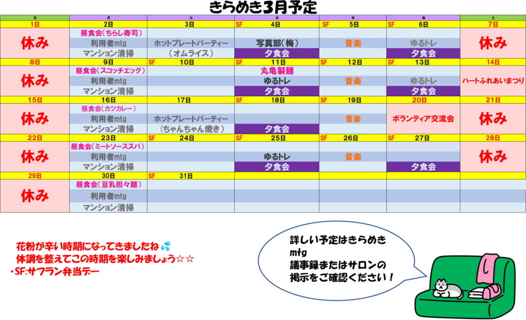 2月の予定